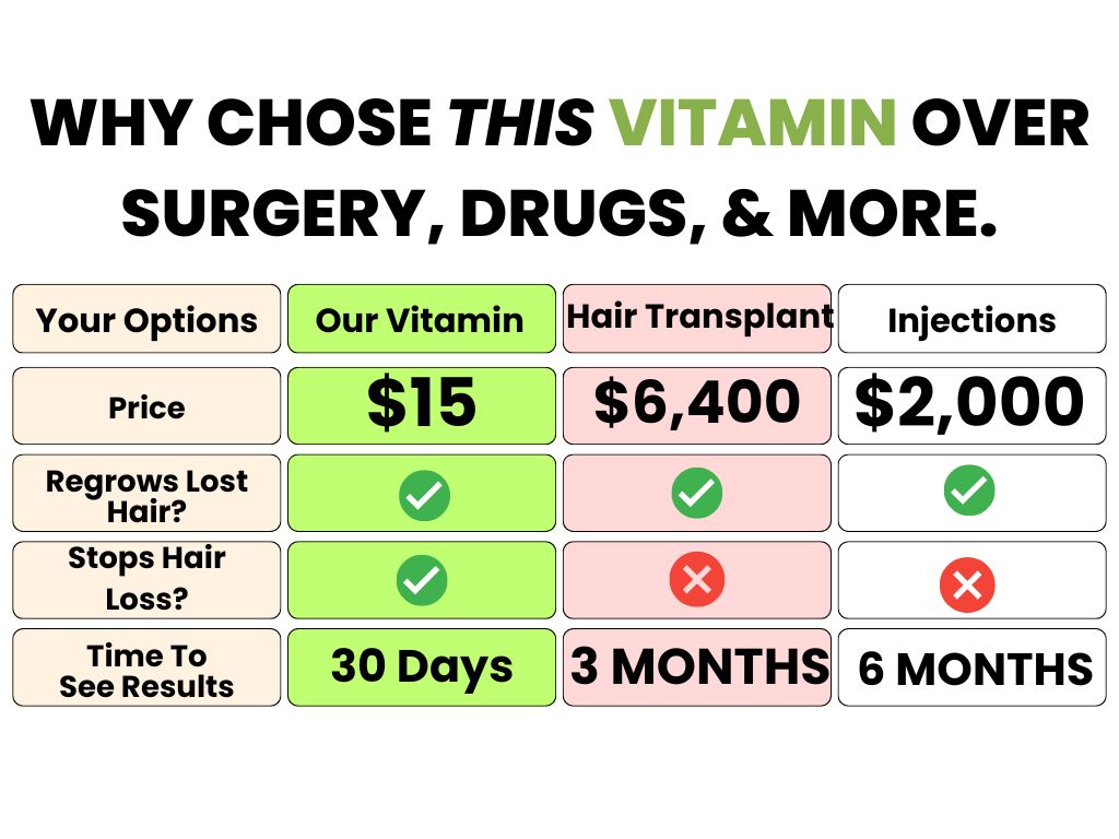 That’s exactly how our vitamin blend helps revive thinning, brittle hair from the inside out. MSM replenishes sulfur—the essential building block of healthy keratin—so strands grow stronger and more resilient. Saw Palmetto helps block DHT, the hormone linked to thinning, while Black Seed Oil nourishes the scalp with antioxidants and omegas that calm inflammation and awaken dormant follicles. Bamboo Silica fortifies each strand’s structure for less breakage, and Biotin fuels faster, thicker new growth at the root.