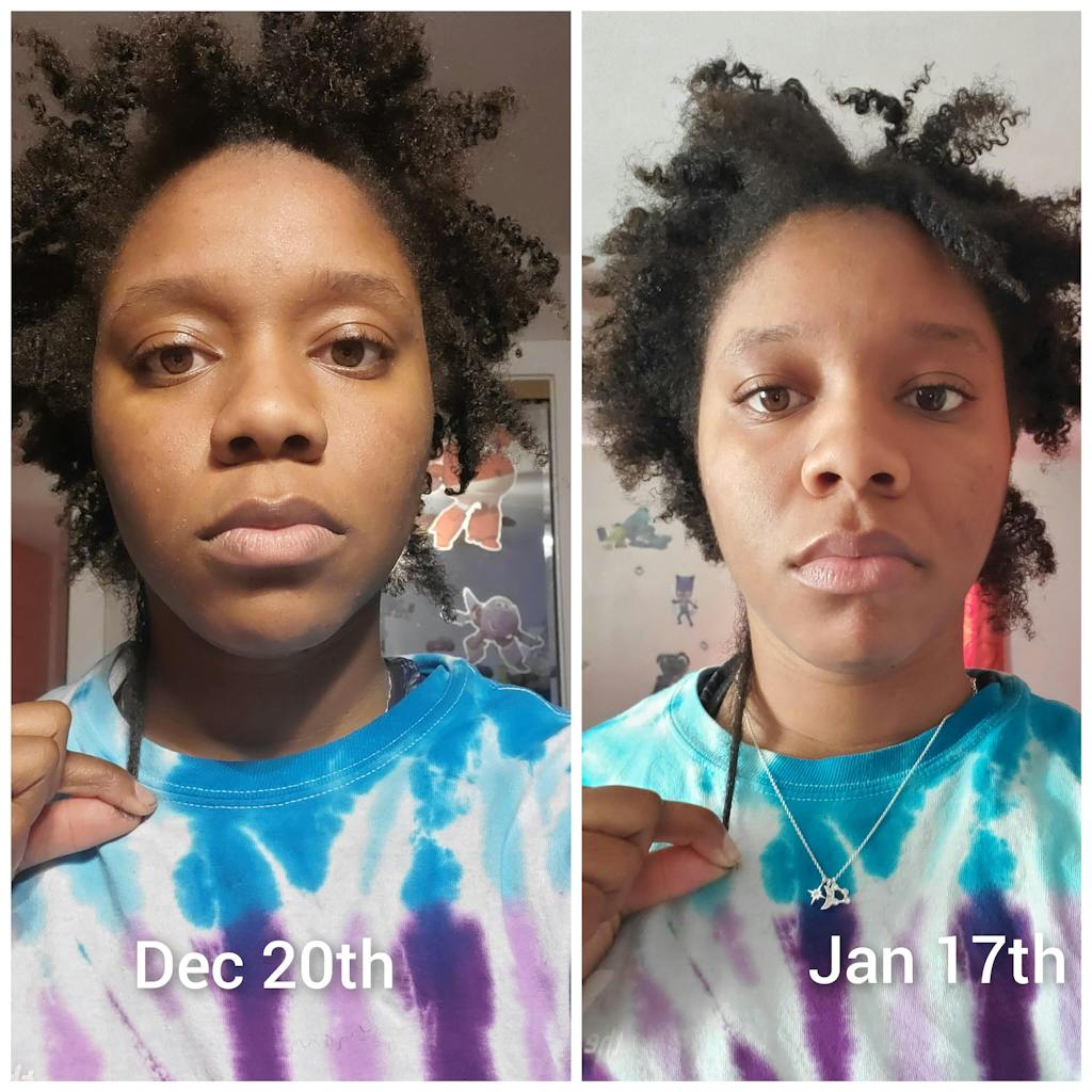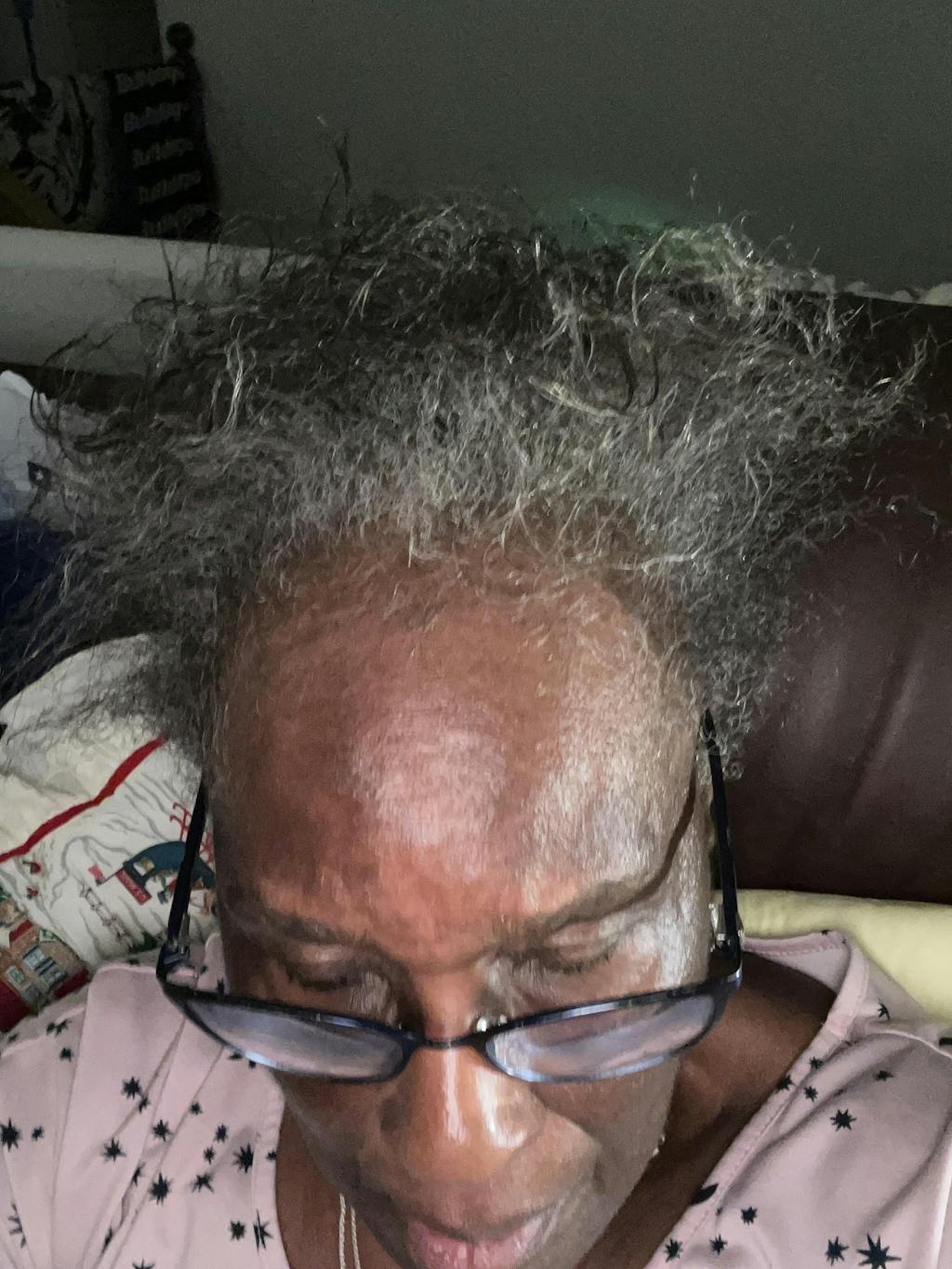Janice has had her hair break off constantly for years. She decided to cut her ends and and then she committed to a low-manipulation month: she wore protective styles, slept in a satin bonnet, and focused on moisture + scalp care. She used this 18 times in 32 days (about 4 nights a week) and was able to see significant regrowth in her thinning crown.